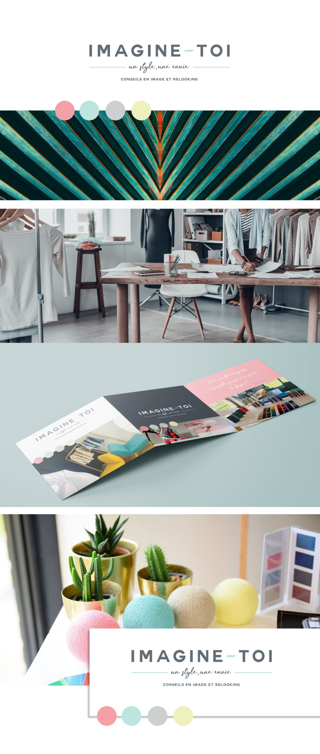 Création de marque : identité, positionnement, logo et charte graphique. R de création a accompagné Julie Vermylen dans sa volonté de vivre de ce qui l’animait réellement : aider les autres à poser un regard neuf sur eux même ! C’est aujourd’hui chose faite avec son agence de conseils en image Imagine-toi !